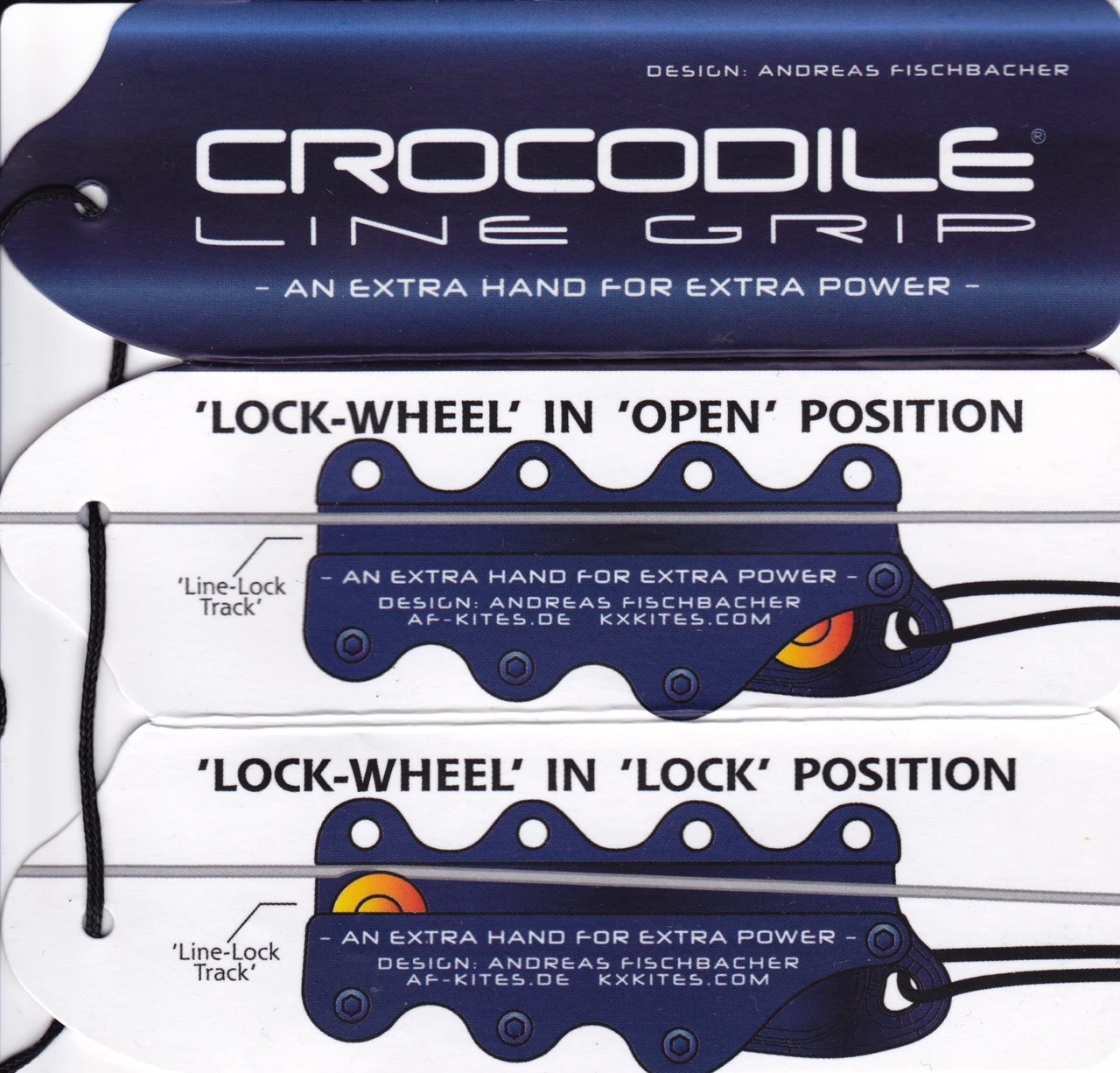 The Crocodile line grip is a useful device for grasping kite line. Very convenient tool for pulling in kite line that is under tension.Â